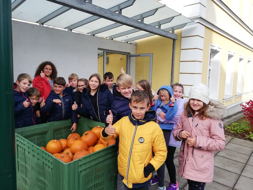 Vor den Herbstferien erhielten unsere SchülerInnen von Herrn Wieser vom Gresslgut Schnitzkürbisse, welche sich perfekt zur Dekoration für bevorstehende Halloween-Feierlichkeiten eigneten.