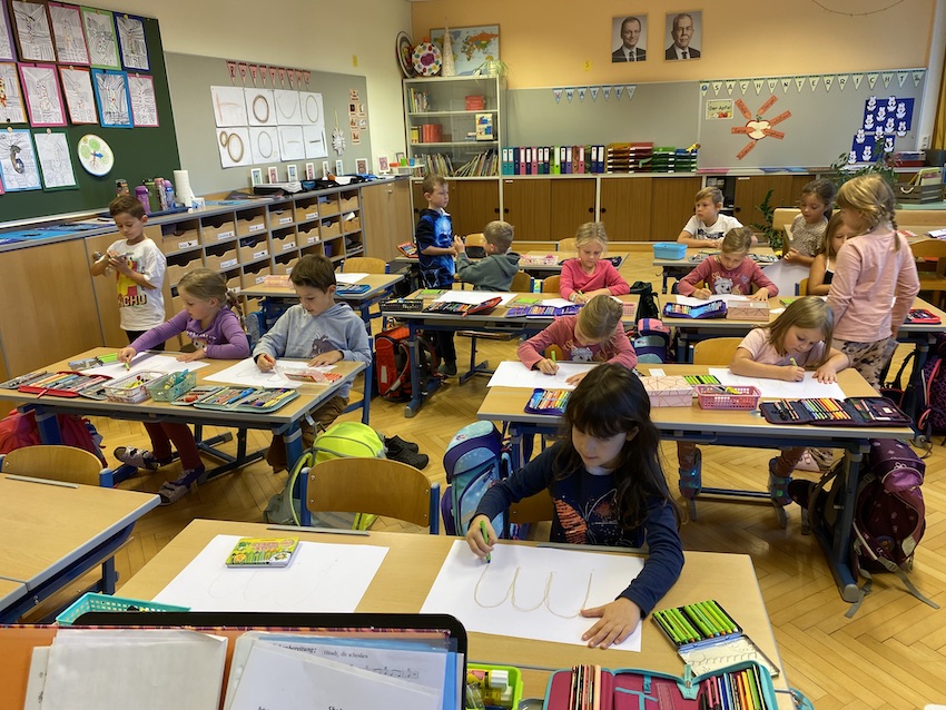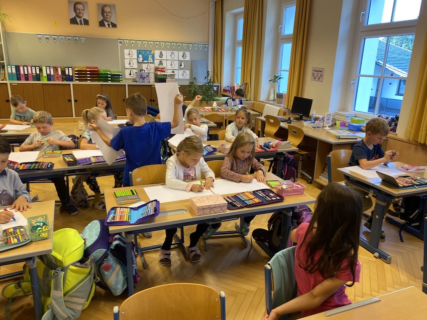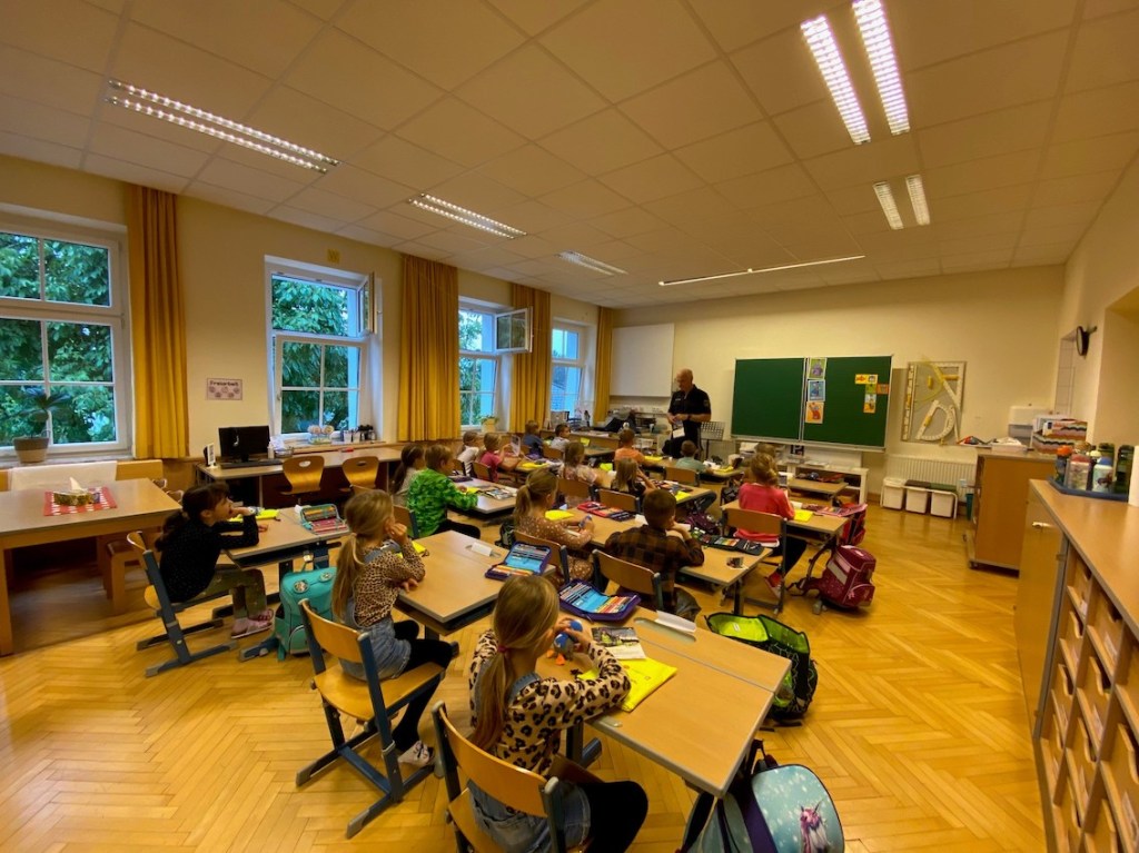 Mit Eifer, Fleiß und sehr viel Schwung starteten die SchülerInnen der 1. Klasse ins neue Schuljahr. Das Klassenkuscheltier Pino ist allseits beliebt und überall dabei.
