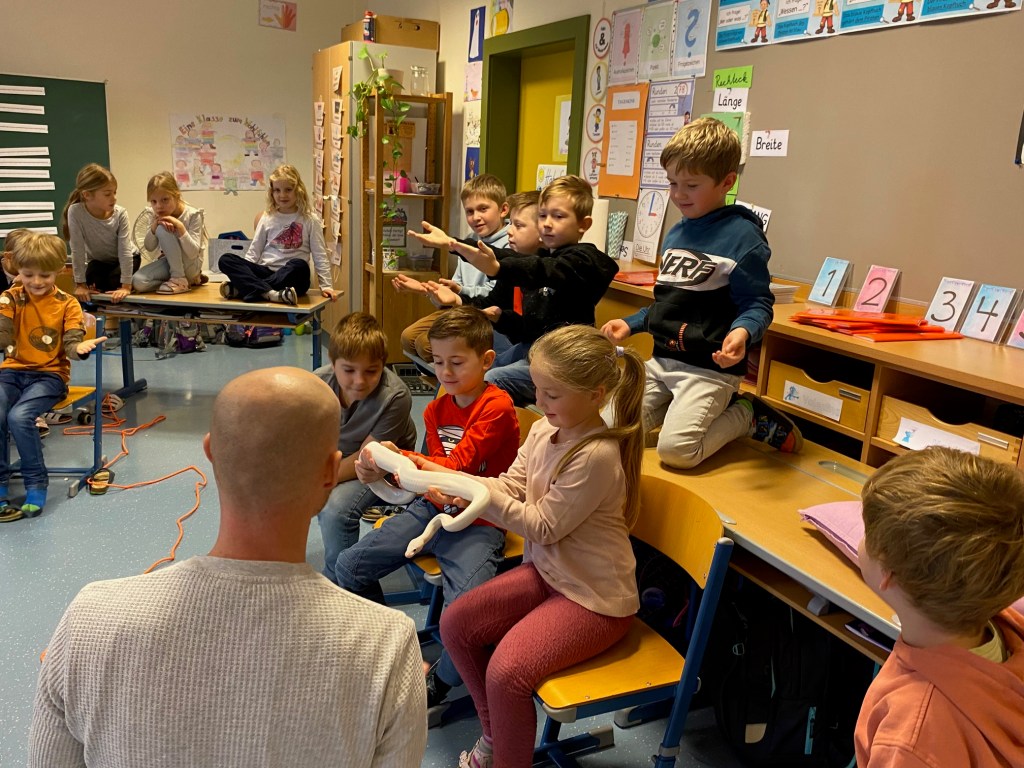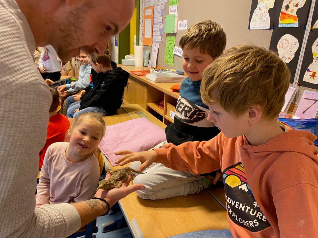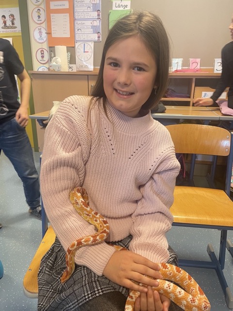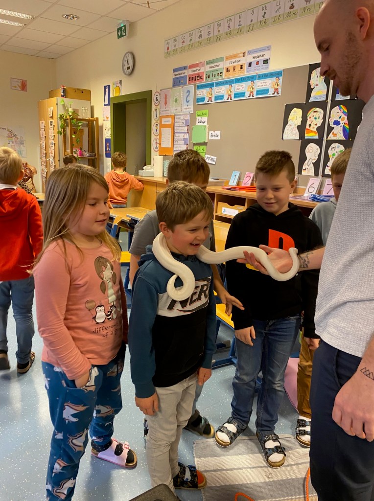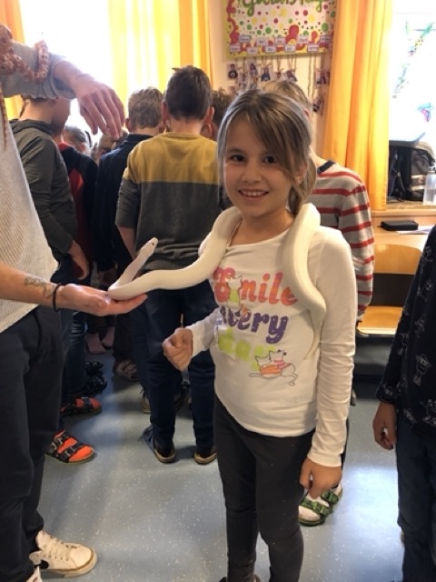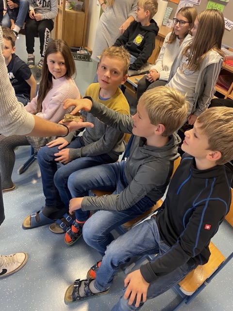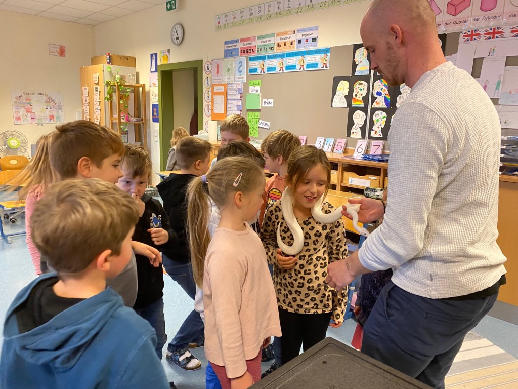 Große Begeisterung löste die Reptilienschau bei unseren Schülerinnen und Schülern aus. Die Kinder bekamen die Gelegenheit, Reptilien aus der Nähe zu betrachten. Viele von ihnen waren besonderes mutig.