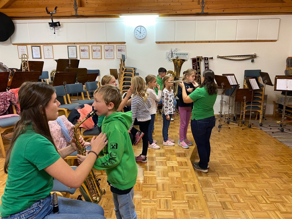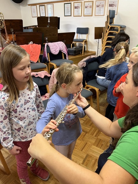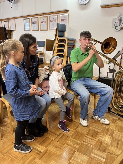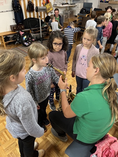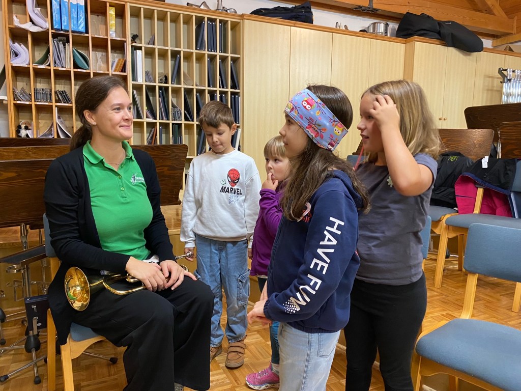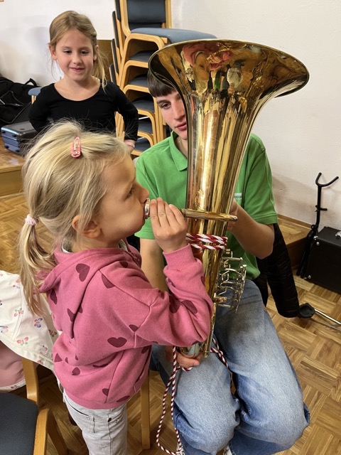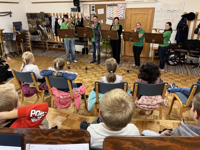 Einen musikalischen Vormittag erlebten unsere SchülerInnen diese Woche beim Musikverein Schiedlberg. Dort lernten sie verschiedene Instrumente kennen, die sie auch selbst ausprobieren durften.